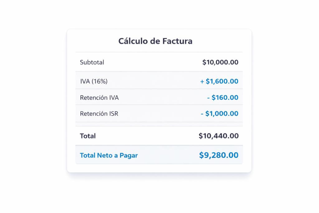 Una calculadora de facturación México permite aplicar el IVA correspondiente y posteriormente determinar las retenciones de ISR e IVA según el régimen fiscal y la actividad.